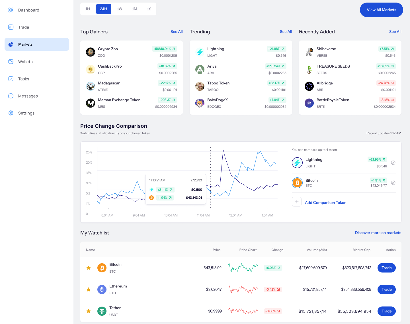 Hold styr på top-performere, sammenlign prisbevægelser og overvåg din portefølje – alt i et klart, hurtigt interface designet for overskuelighed og effektivitet.